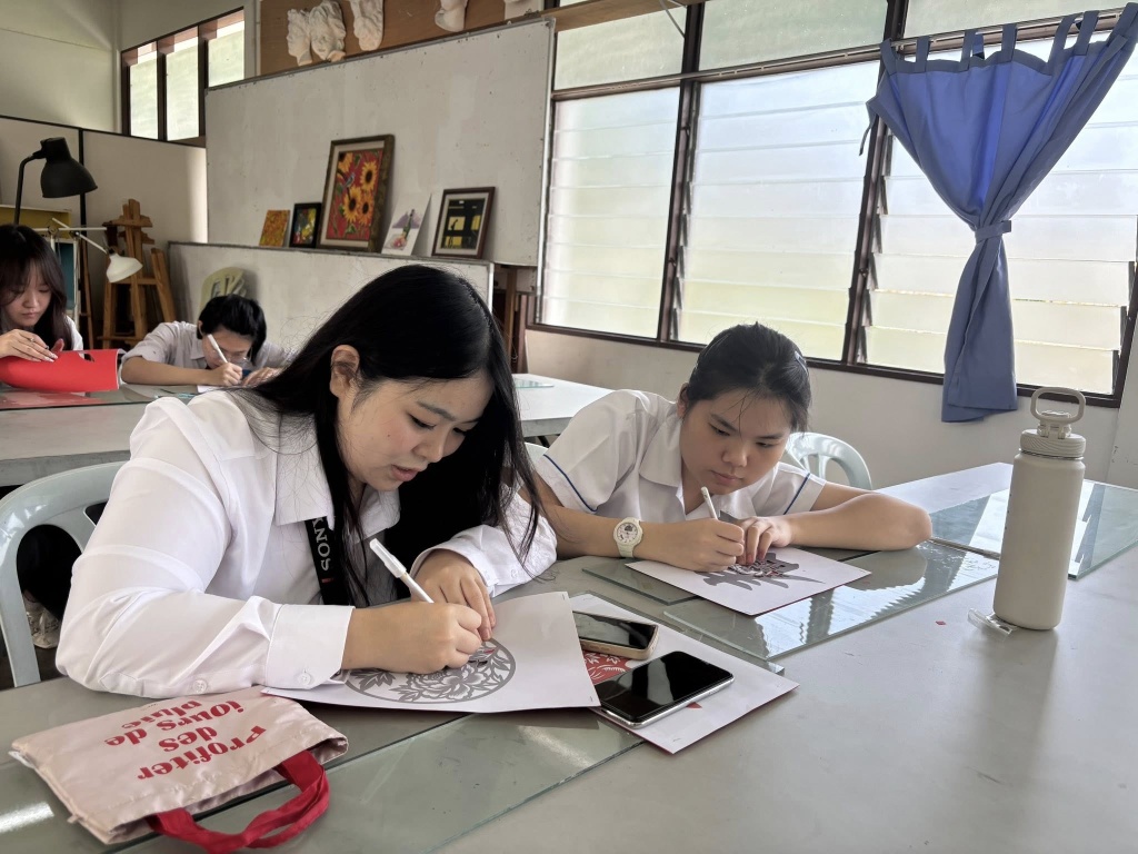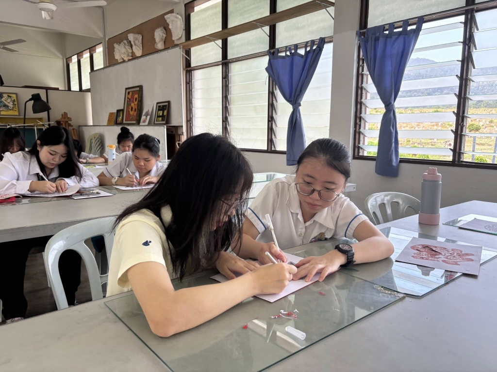 随后,来访师生走入课堂,观摩并体验本校的教学现场,包括华文课、历史课、英文课、生物课及美术课等课程活动,从不同角度记录校园的学习样貌与课堂氛围。
