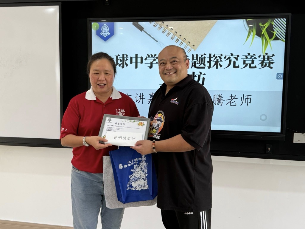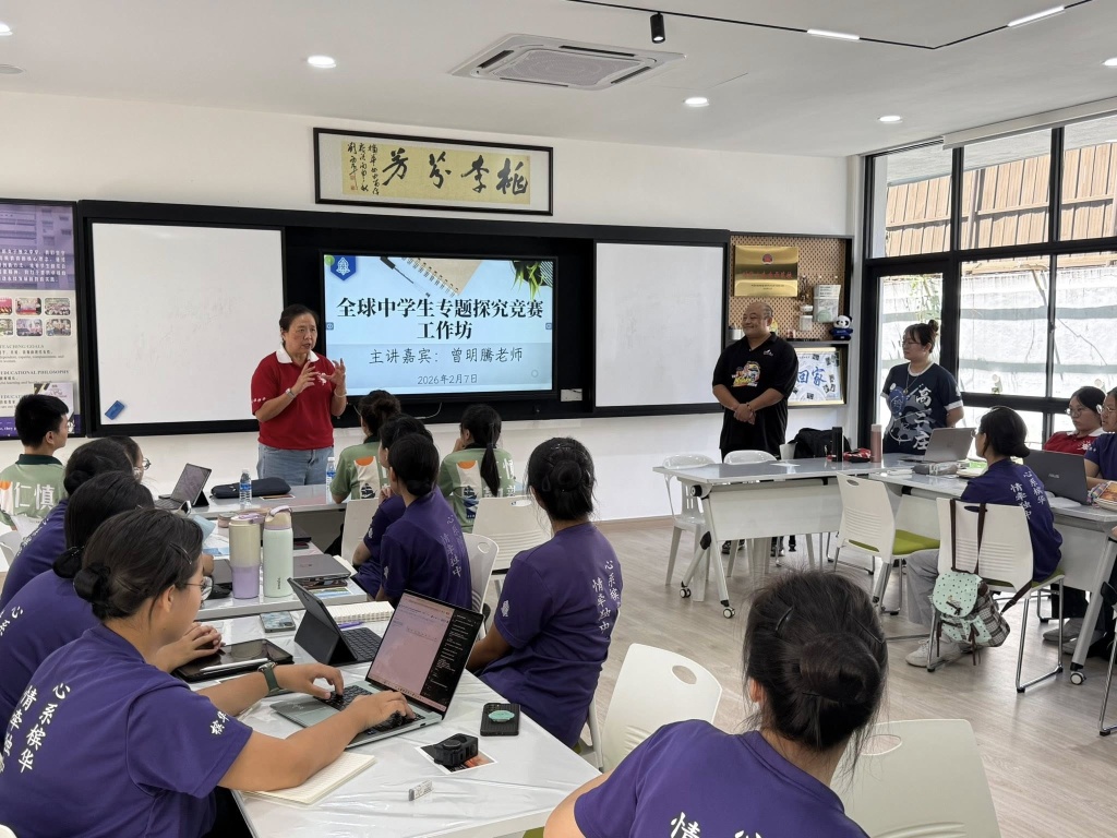 为了让学生能够充分准备参与由马来西亚全球产学研创协会、全球未来产学人才培育策略联盟(UAiTED)、中原大学及国立台湾师范大学主办的2026年“全球中学生专题探究竞赛”,本校教务处特此举办专题工作坊,并邀请台湾曾明腾老师,为5位指导老师及24位高中学生提供专业指导。
