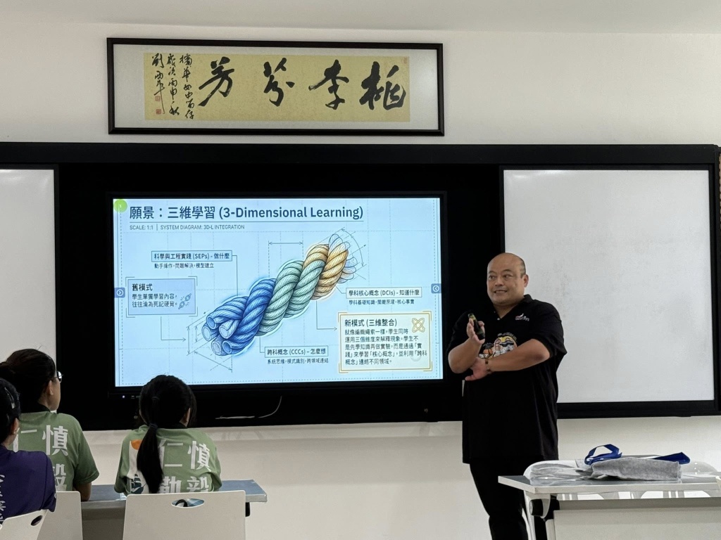 本次工作坊的重点在于透过明腾老师的专题讲座,引导学生理解教育素养的重要性、培养问题解决能力,并强调学生在探究学习中应扮演主动探究者的角色。课程内容涵盖三维学习架构,说明如何进行有效提问、建构与分析数据、思考议题的因果关系,并将相关学科的核心素养加以整合。