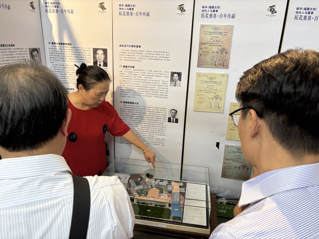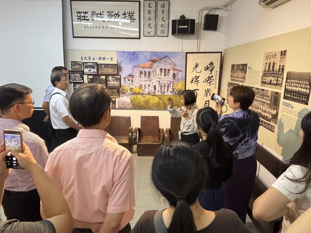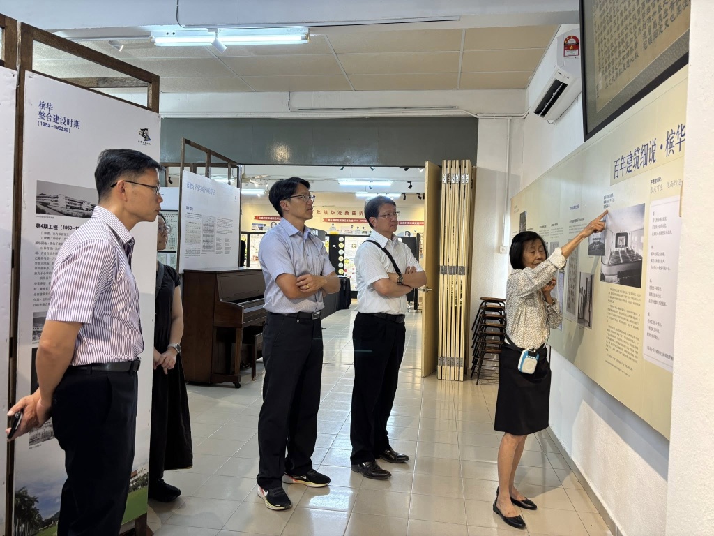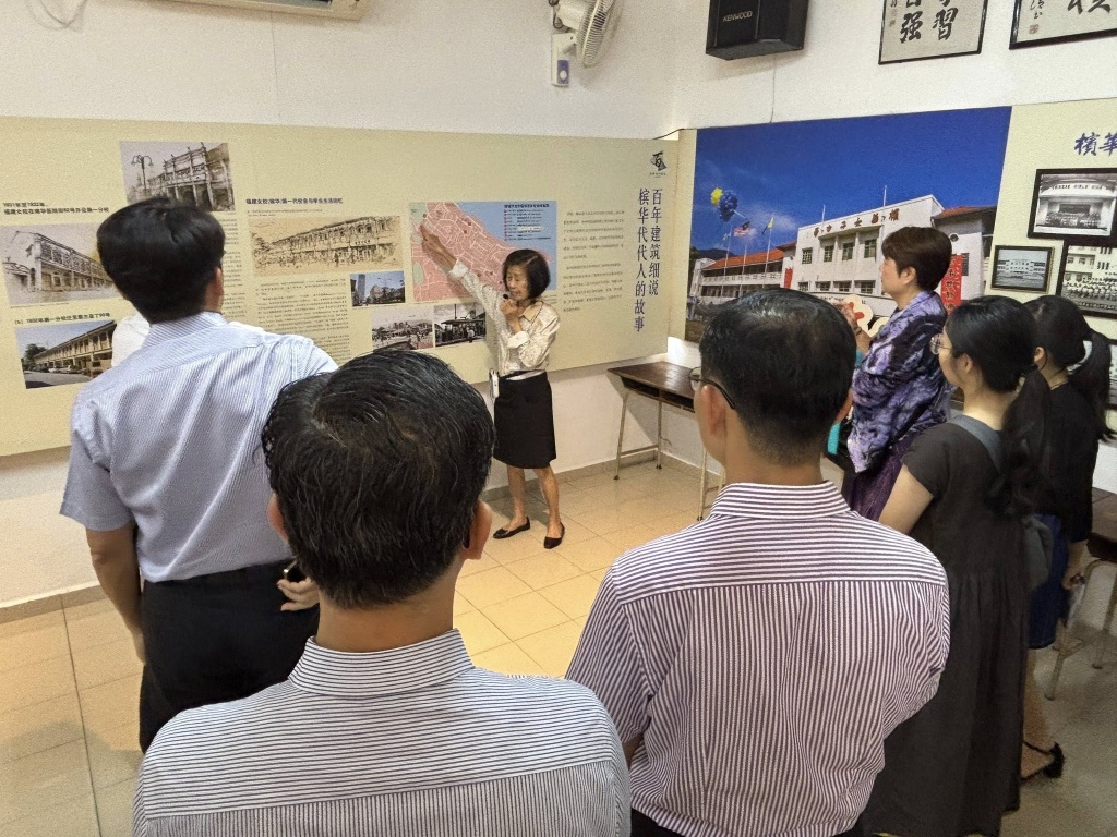 随后,由谭惠英老师为来宾进行校史导览与分享,介绍本校的创校背景、发展历程以及办学特色,让访宾对槟华独中的教育理念与成长轨迹有更深入的了解。