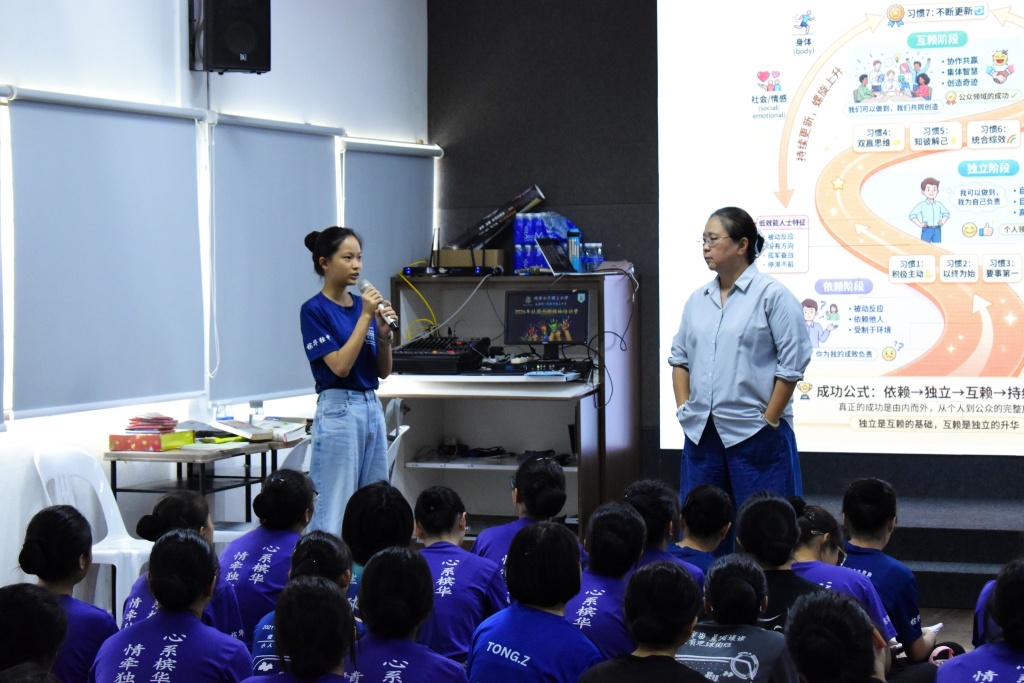 在为期两天一夜的干部培训营中,槟华独中的学生通过培训活动,学习如何成为一名优秀的领导者。通过理解史蒂芬·柯维(Stephen Richards Covey)提出的《七个好习惯》,学生学习掌握多项领导素养能力,例如积极主动地面对挑战、以终为始设定清晰的目标,以及贯彻“要事第一”的时间管理原则。此外,学生也学习如何以双赢思维、知彼解己地方式进行沟通,并在团队中发挥协同合作的力量,从而全面提升个人与团队的效能。