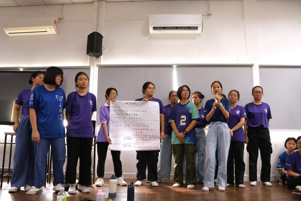 学生在营队的第一天先分为三个小组,每个小组需要从零开始进行讨论与策划,完成一份完整的活动计划书。活动计划书必须从三种活动类型中进行选择,即户外活动、服务活动以及文艺活动。当计划书完成后,各小组需要提交给相关老师或部门进行审批,并在活动的第二天,正式在营队中执行已获批准的活动计划。