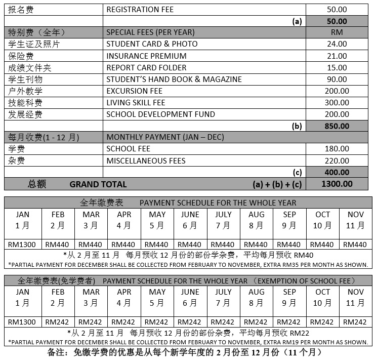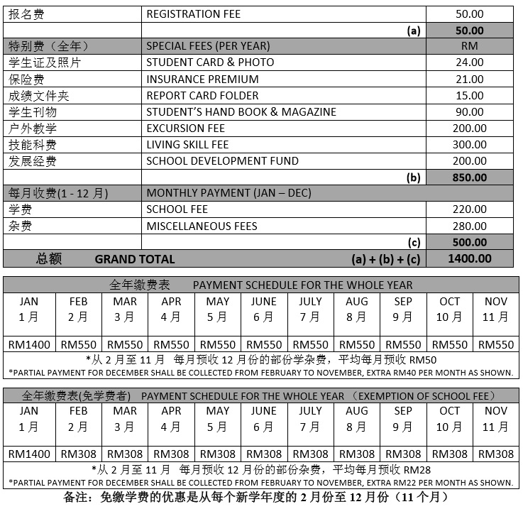 2026 年本地初中新生/插班生收费表